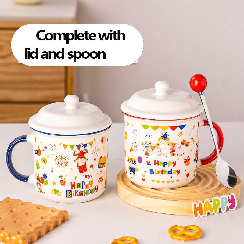 Add a playful pop of joy to birthday mornings or casual sipping with this Happy Birthday Themed Mug Set-designed for both charm and daily use! Each mug features a vibrant, all-over cartoon print: think confetti, party hats, gift boxes, and cheerful “Happy Birthday” lettering, wrapped in bright hues that feel like a mini celebration in your hands. Crafted with durable ceramic, this set comes with matching lids and spoons (yes, the lid fits snugly to keep drinks warm and block dust-no more unexpected crumbs or debris!). The mugs have a comfortable, rounded handle (one in bold blue, the other in vivid red) for easy gripping, and their smooth, glossy finish makes cleaning a breeze. Perfect for birthday gifts (pair it with a bag of coffee or tea for a thoughtful present!) and self-treats