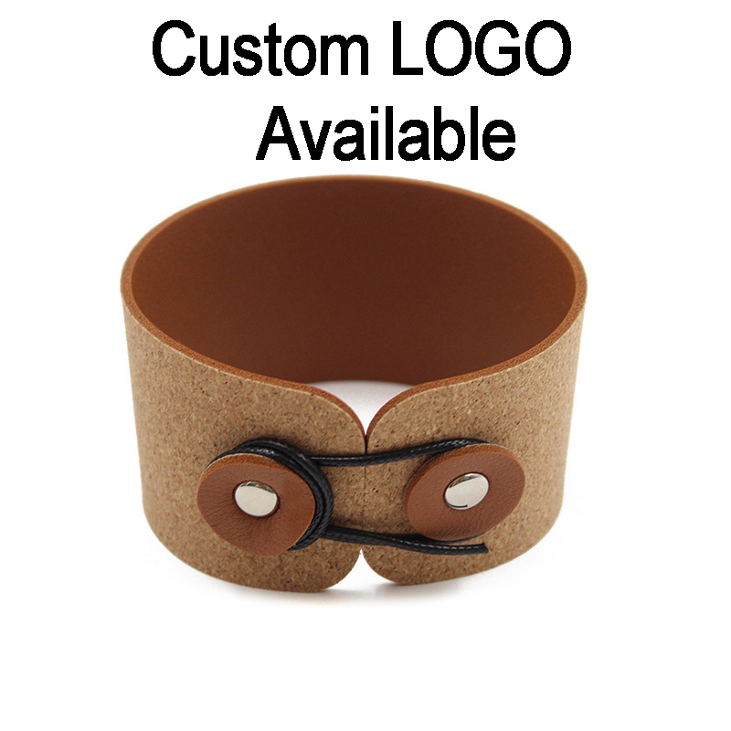 This stackable natural cork leather cup sleeve features a sleek, modern minimalist design that elevates the look of any cup or tumbler. Crafted from high-quality PU leather with a natural cork exterior, it offers a durable yet lightweight solution for protecting your drinkware from scuffs, condensation, and temperature loss. Its stackable design allows for convenient storage when not in use, making it ideal for both home and commercial settings. The product is fully customizable, enabling you to add logos, text, or unique patterns to align with your brand identity or personal style.