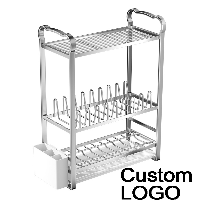 This 3-tier stainless steel kitchen dish rack is a practical storage solution for modern kitchens. Made of high-quality food-grade stainless steel, it features excellent rust and corrosion resistance, ensuring long-term use even in humid environments. The multi-layer design provides ample space to store plates, bowls, cups, and kitchen utensils, while the built-in drainboard effectively collects excess water to keep your countertop dry and clean. With a detachable structure, it can be easily assembled and adjusted to fit different kitchen spaces, and the non-slip feet enhance stability during use.